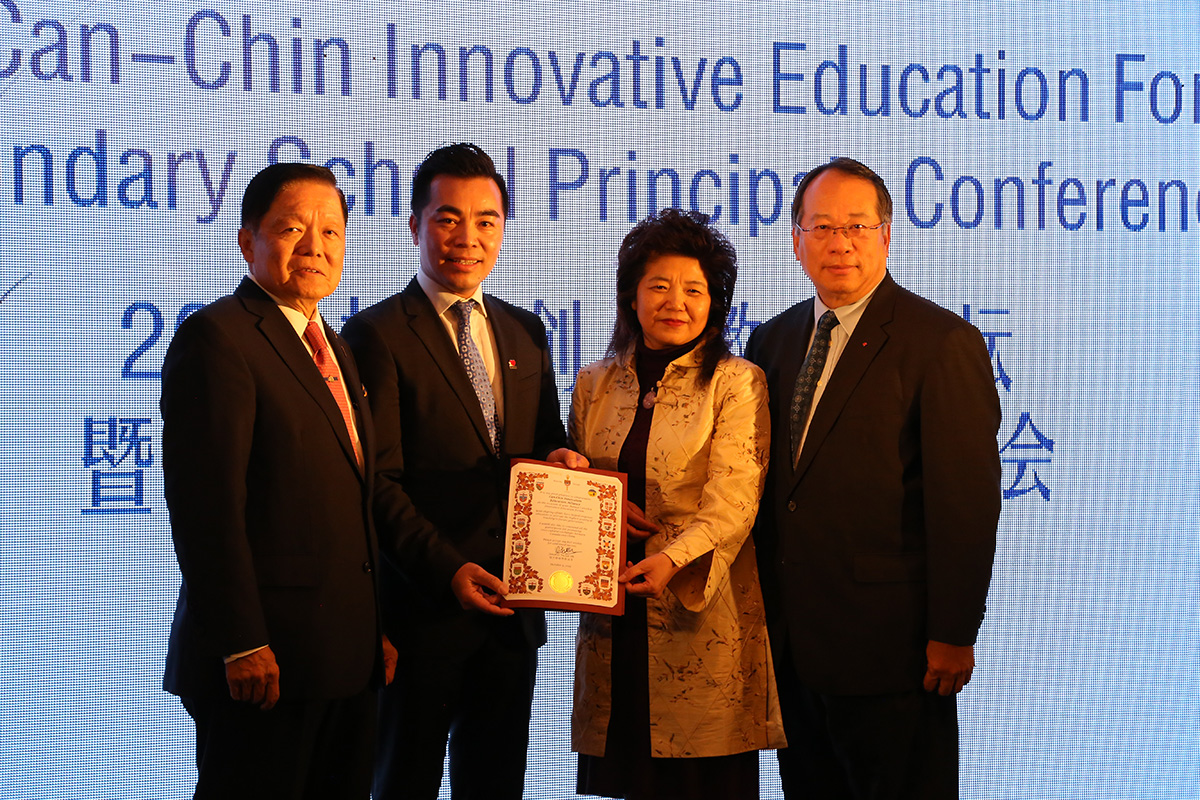 此外中国驻加拿大渥太华使馆公使衔教育参赞杨新育及王本中-中国国家教育咨询委员会委员,中国教育学会高中教育专业委员会名誉理事长,北京圣陶教育发展与创新研究院法人院长,周满生-国家教育发展研究中心原副主任、研究员,现任中心专家咨询委员会副主任。罗洁-国家督学,北京市教育学会会长,中国教育国际交流协会中学教育分会理事长,彭建华-加皇国际教育集团董事长,此外还有来自中方学校校长近20名一道专程参加此次教育论坛。