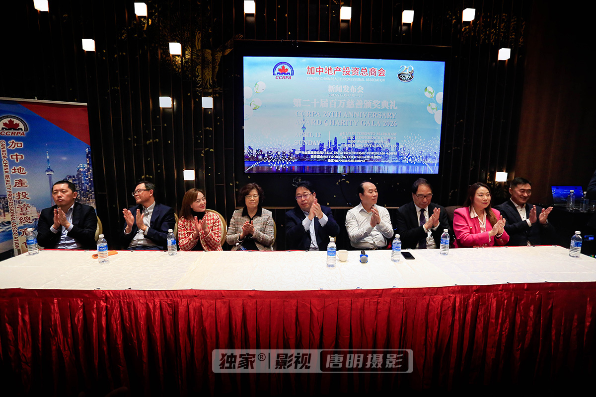 2026年1月23日,加中地产投资总商会CCRPA第二十届百万慈善颁奖典礼新闻发布会在万锦市金瑞麟大酒店隆重举行。作为加拿大华语社区规模最大、最具影响力的年度盛事之一,加中地产投资总商会CCRPA慈善颁奖典礼晚宴被誉为地产界及商界的“奥斯卡盛典”,每年吸引超过千名地产与商业精英参与,影响力覆盖整个大多伦多地区乃至全国。2026年,恰逢加中地产投资总商会CCRPA成立二十周年。为庆祝地产总商会CCRPA二十年来为加拿大社会及地产行业作出的卓越贡献,同时进一步履行CCRPA对慈善事业累计一百万加元捐赠的庄严承诺,会长孙志峰Steven Sun正式宣布:2026年4月12日(星期日),加中地产投资总商会CCRPA将在万锦市希尔顿会议中心Hilton Toronto Markham Suite Conference Centre隆重举办由中国茅台冠名赞助支持的「CCRPA第二十届百万慈善颁奖典礼晚宴」,本届活动将汇聚来自大多伦多地区数百家地产及相关企业,近千名地产精英、商界嘉宾及行业领袖齐聚一堂,鼓舞士气,奖励先进,同时履行社会责任与担当,为老人社区筹集百万善款,以实际行动回馈社会。