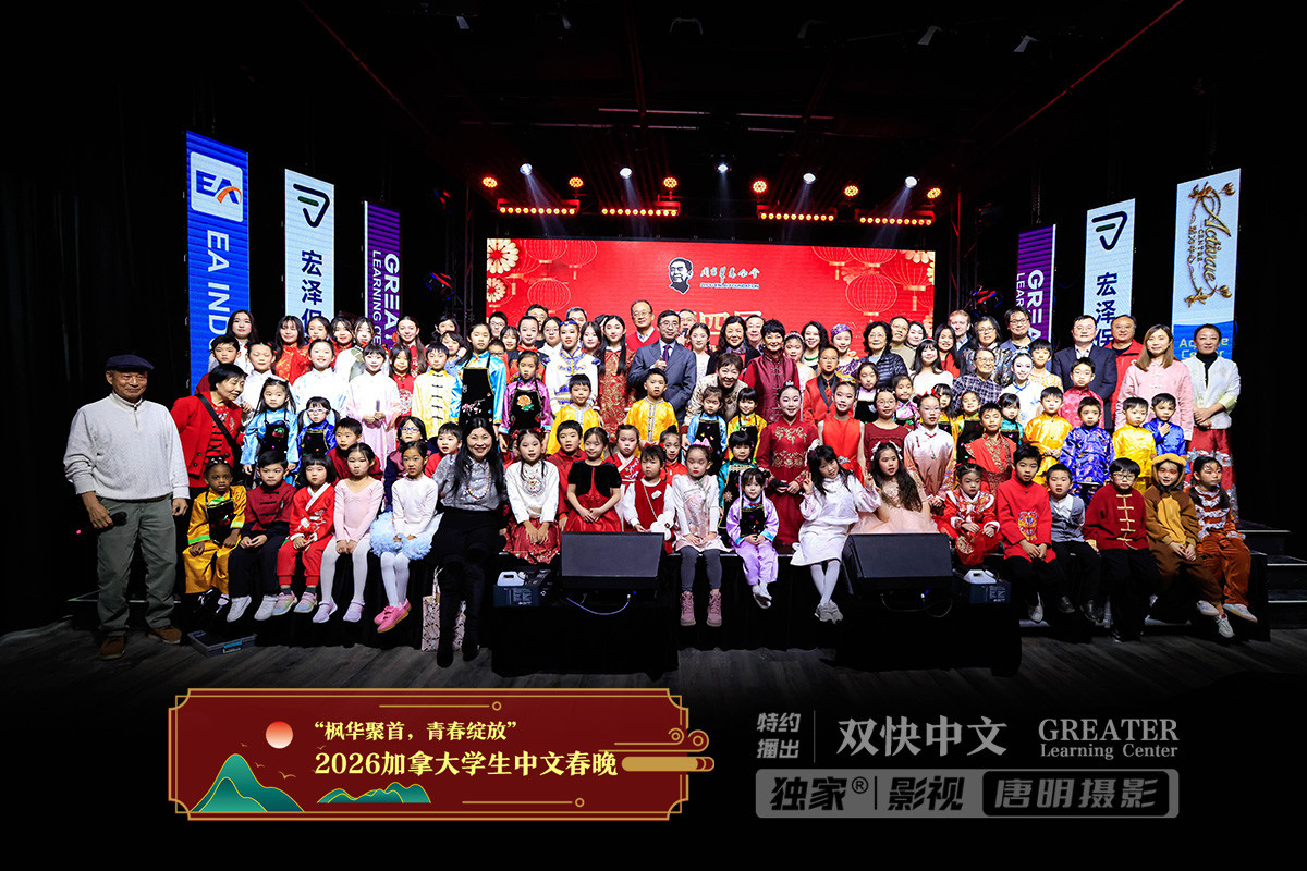 2026年2月8日,由周恩来基金会主办,双快中文、更优教育和加拿大小象传媒共同协办的“2026第四届加拿大学生中文春晚”在新动力传媒演播厅隆重举行。晚会以学生为主体、以中文为载体,汇聚40余位嘉宾政要及社会贤达到场祝贺,吸引家长、学生及社区观众400余人现场参与。全场由22位新生代中文主持人接力主持,五大板块串联推进,共呈现31个节目,涵盖合唱、朗诵、戏剧、相声、绕口令、舞蹈、功夫与现场书法等多元形式,集中展示了加拿大学生中文学习成果与中华文化魅力。