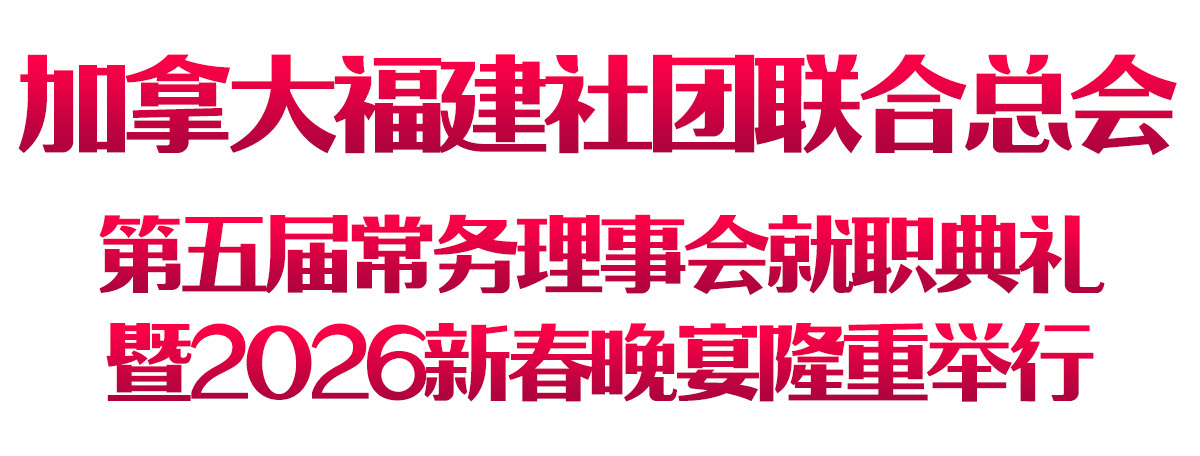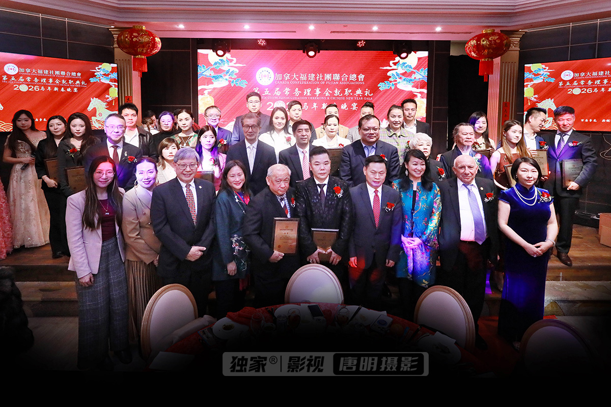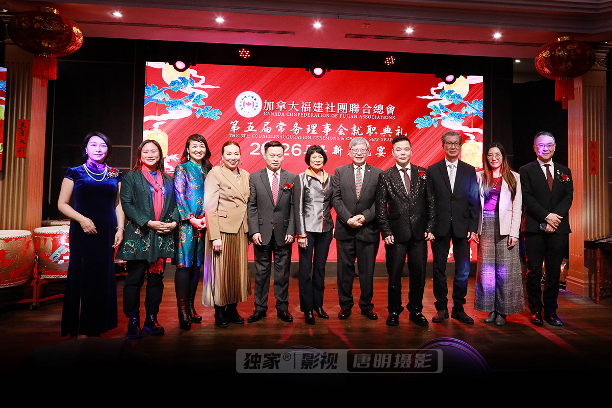加拿大福建社团联合总会第五届常务理事会就职典礼暨2026新春晚宴2026年3月6日晚在大多伦多地区隆重举行。来自联邦、省、市三级政界代表、侨界领袖以及社会各界嘉宾齐聚一堂,共同见证新一届理事会的诞生,并在热烈祥和的节日氛围中共庆新春。