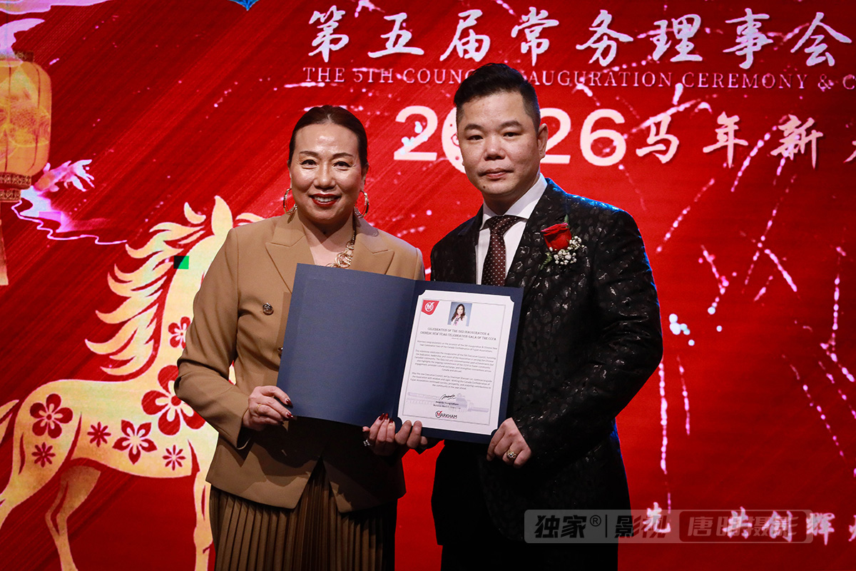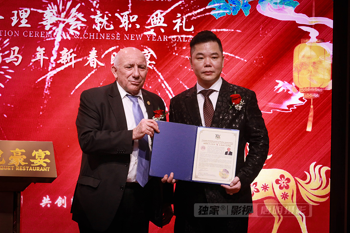 副总领事程洪波为常务副主席郭晓峰颁发证书