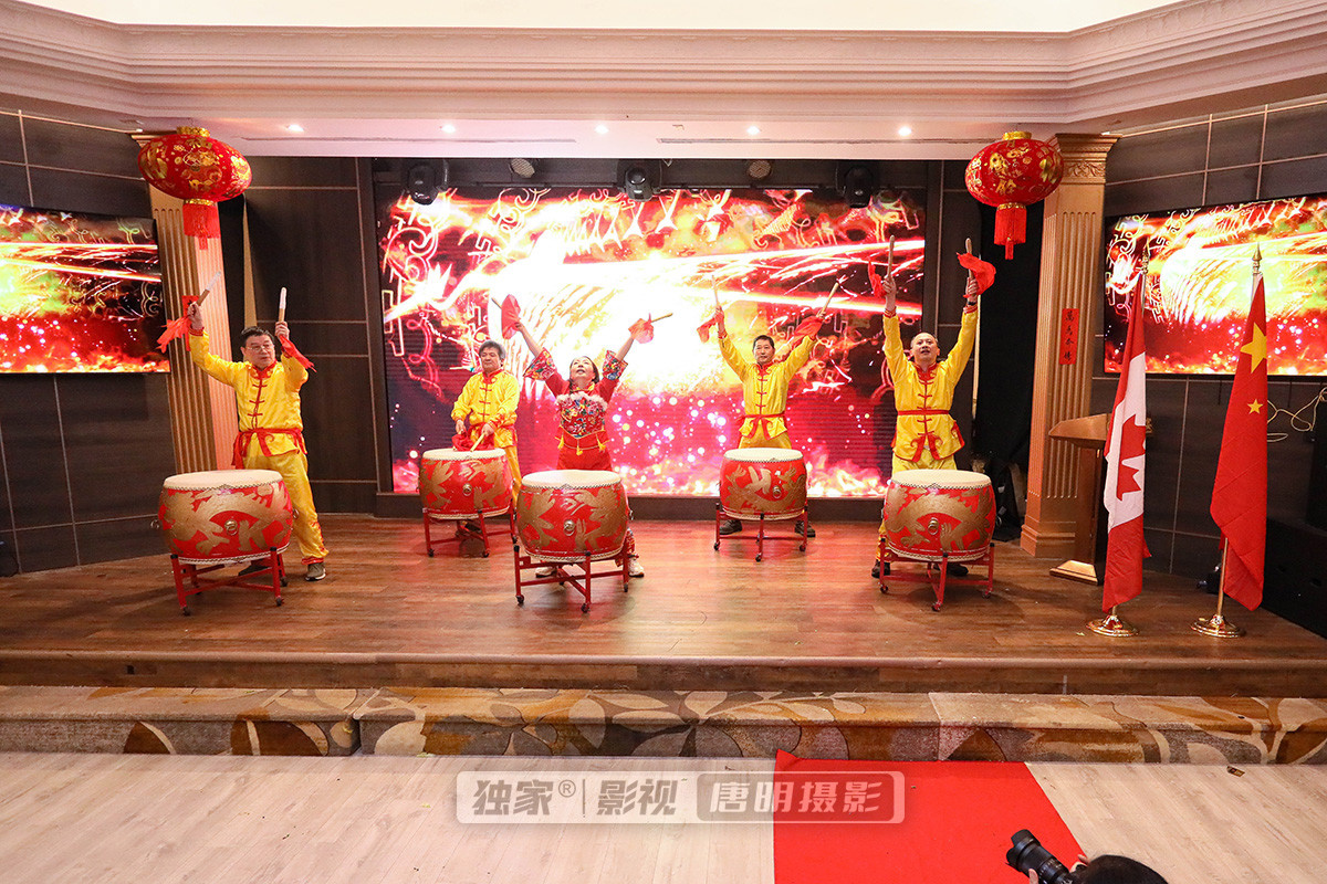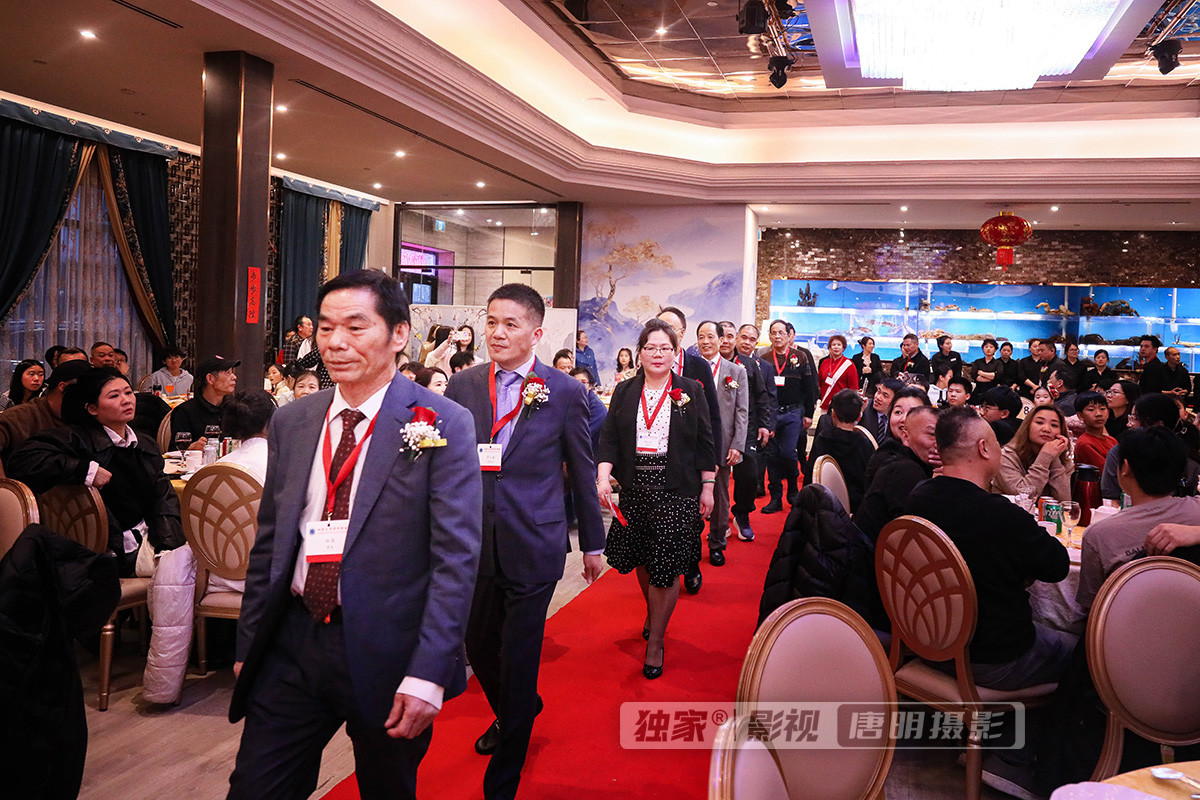 在激昂欢腾的锣鼓声中,加拿大平潭同乡会第五届理事会会长林华,率新一届理事会全体成员迈着铿锵步伐踏上红毯,正式步入主会场。